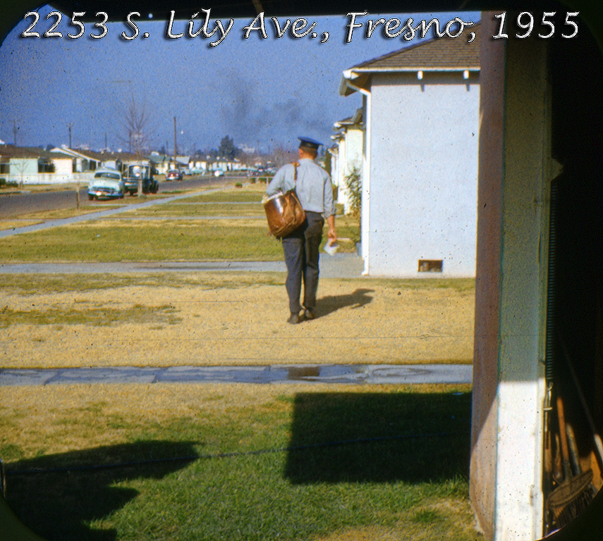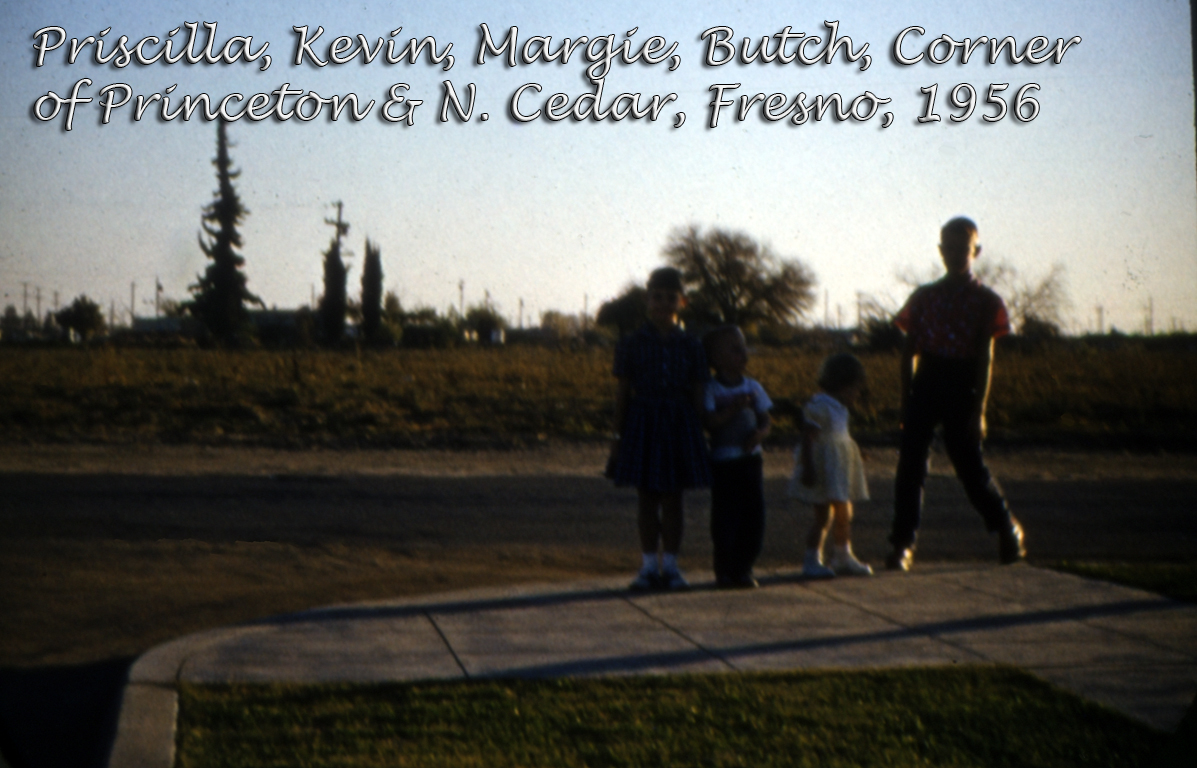 This picture looks directly at the vineyard that was soon to be ripped out to build McLane HS.  The English family (Butch, Priscilla, and Margie) had just moved into the corner house.