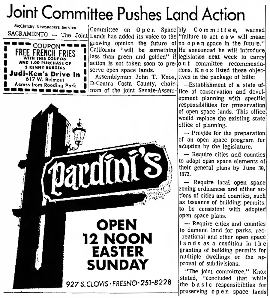 The Pardini's Fig Garden location undoubtable became the flagship and best known of Al's ventures. And even today it is a well known restaurant. But in 1970 Al also created a restaurant on S, Clovis Ave. where I was a busboy. It was a longer drive for me as I lived near Cedar and Ashlan but I was happy to have a job while attending McLane High School. All was going well and occasionally Mr. Pardini would come into his restaurant and was always nice to me with a kind word or two.