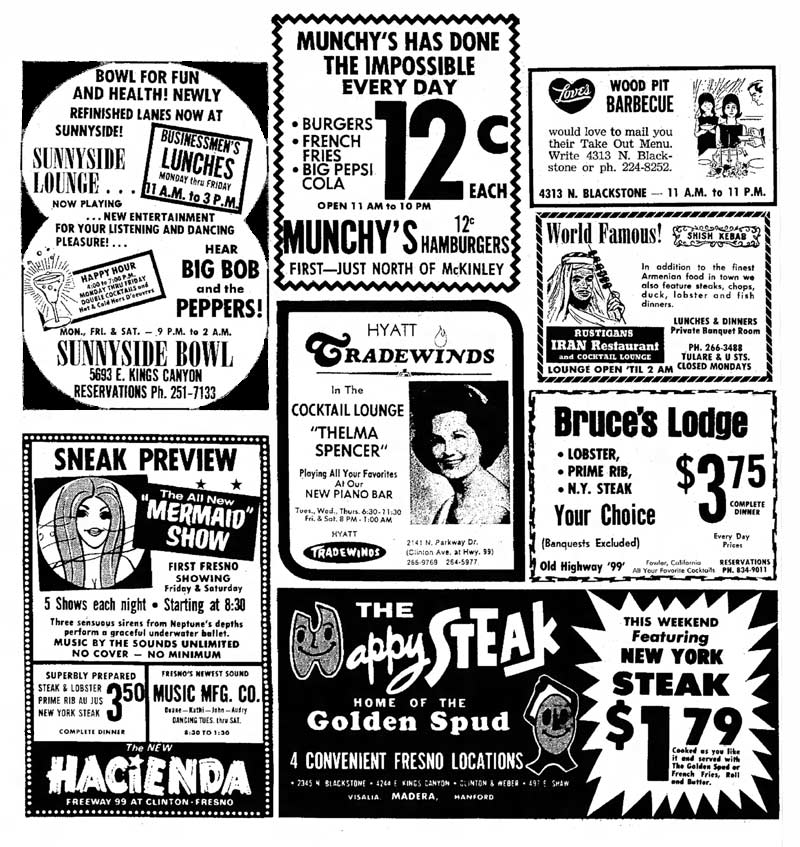 *Note from admin: Newspaper clipping added from 1970 showing Happy Steak ad.