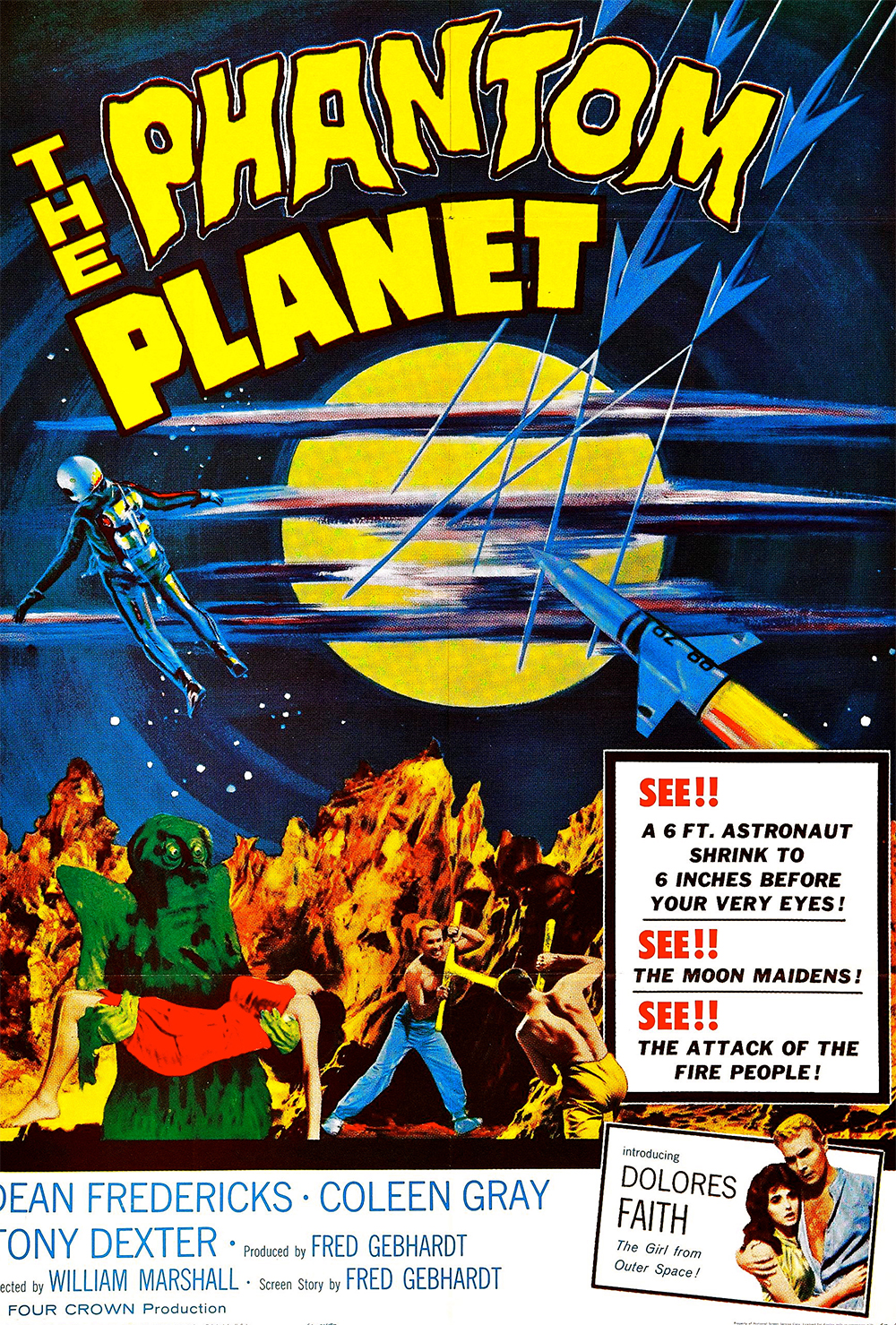 The Phantom Planet? Saw it at the Wilson Theater. The marquis proclaimed "starring Jimmy Weldon." Jimmy's character actually died before the titles and opening credits rolled. His space ship crashed into the planet (that they couldn't detect). Real stars were Frances X. Bushman and Coleen Gray. What's crazy is I drove Coleen Gray in the Brentwood Fourth of July parade many years later in my Edsel convertible, and didn't recognize her from the movie (what a surprise). Wish I had done some homework, and I might have known.