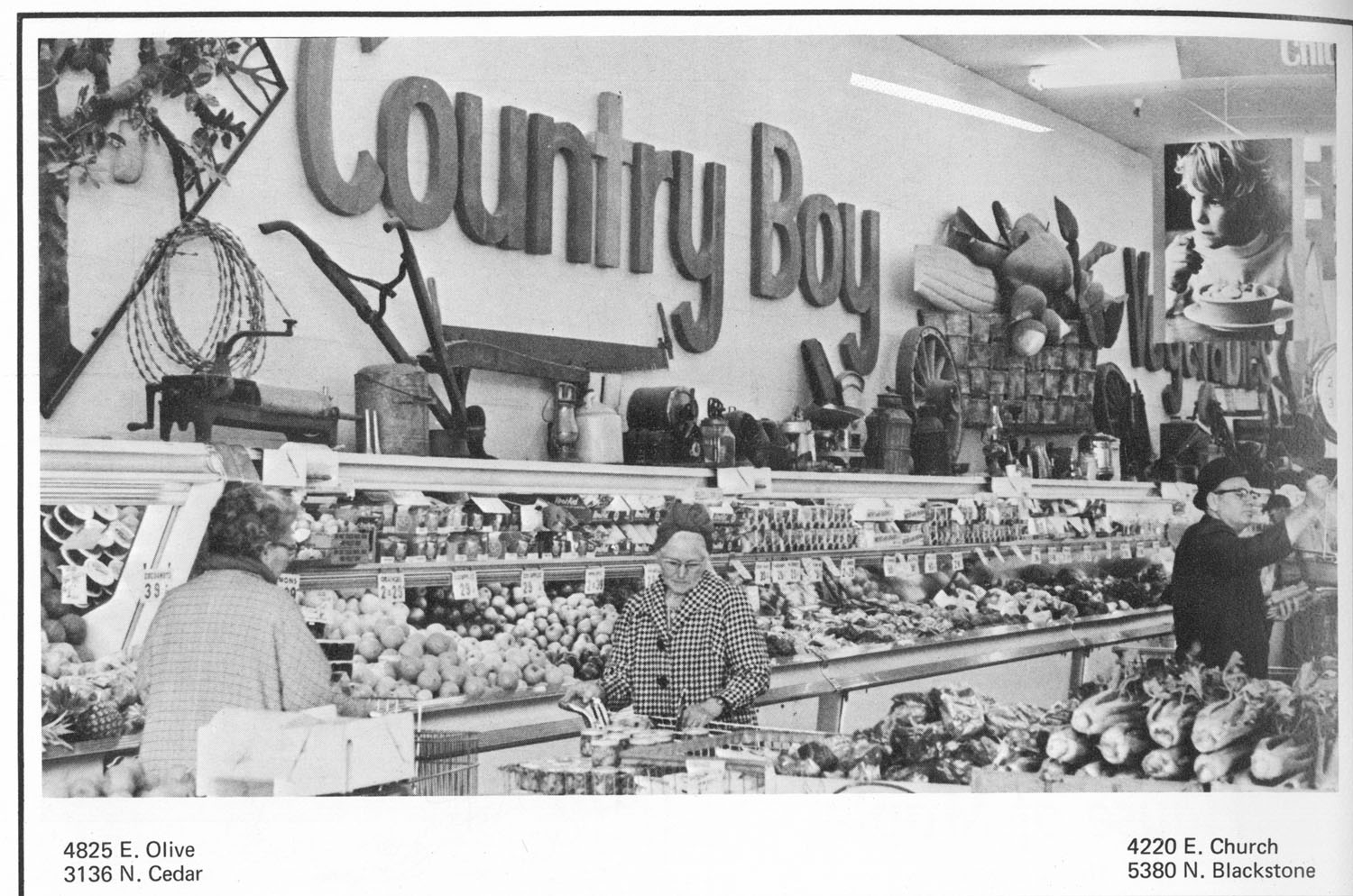 The old Country Boy market on Blackstone and ? The one that the irrigation canal ran behind and the two streets merged to become Blackstone some where between Olive and McKinnley (help anyone?) This was on the southeast corner of Fresno and McKinley. I used to live in the Carmen Cul de sac back when I was little. ( just south of McKinley and Fresno. ) I used to buy candy there. Back then you could walk to the store by yourself when you were 5. I always go. "Watch out and stay away from the ditch"