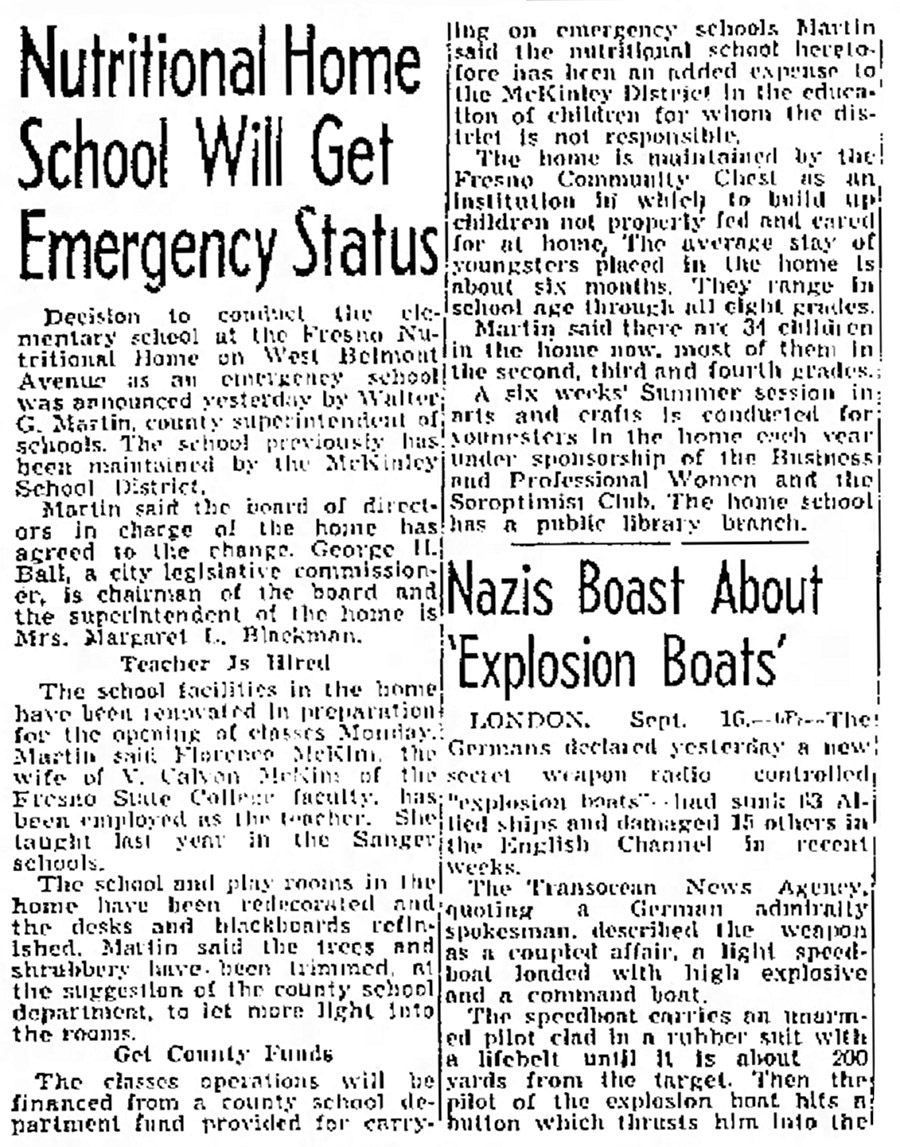 My parents helped manage the Nutritional Home for a few years. I believe it was supported in part by several women’s guilds from Valley Children’s Hospital. At the time we lived there maybe 1962-1966 it was a home for physically and emotionally handicapped children.