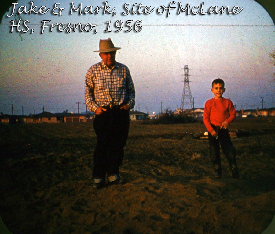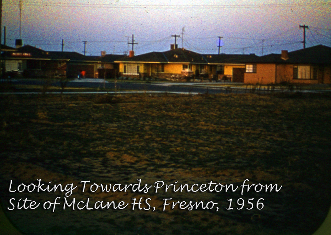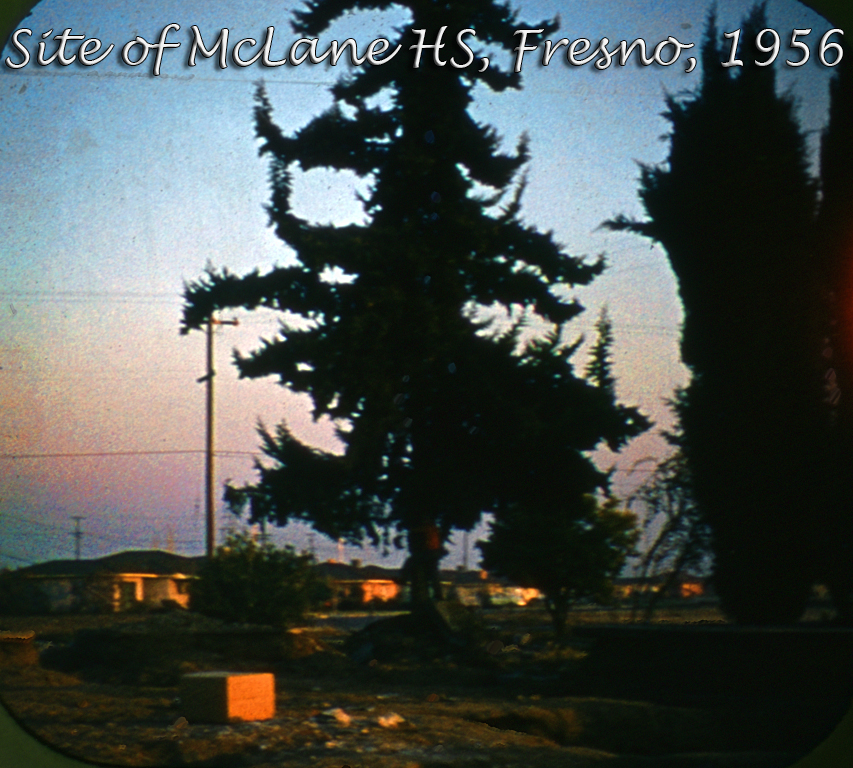 This picture looks directly at the vineyard that was soon to be ripped out to build McLane HS. The English family (Butch, Priscilla, and Margie) had just moved into the corner house.