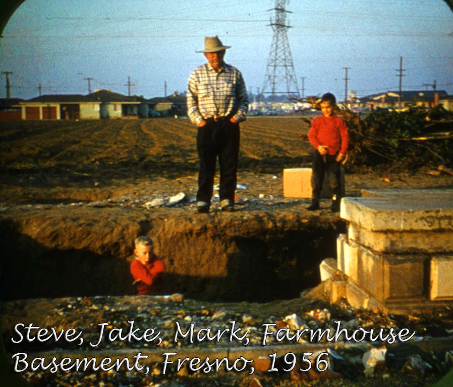 This is right after they tore up the vineyard to build McLane HS. You can see a big pile of grape vines in the background. They set fire to them the next day and they burned for a couple of days. Cal Kalkowski rescued 2 or 3 of them and I imagine they are still growing in the backyard on Princeton.