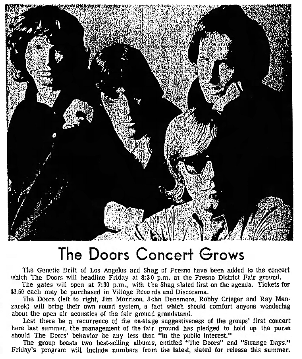 This is Dale Mehls' account of the Doors at the Fresno Fairgrounds! Go Dale!