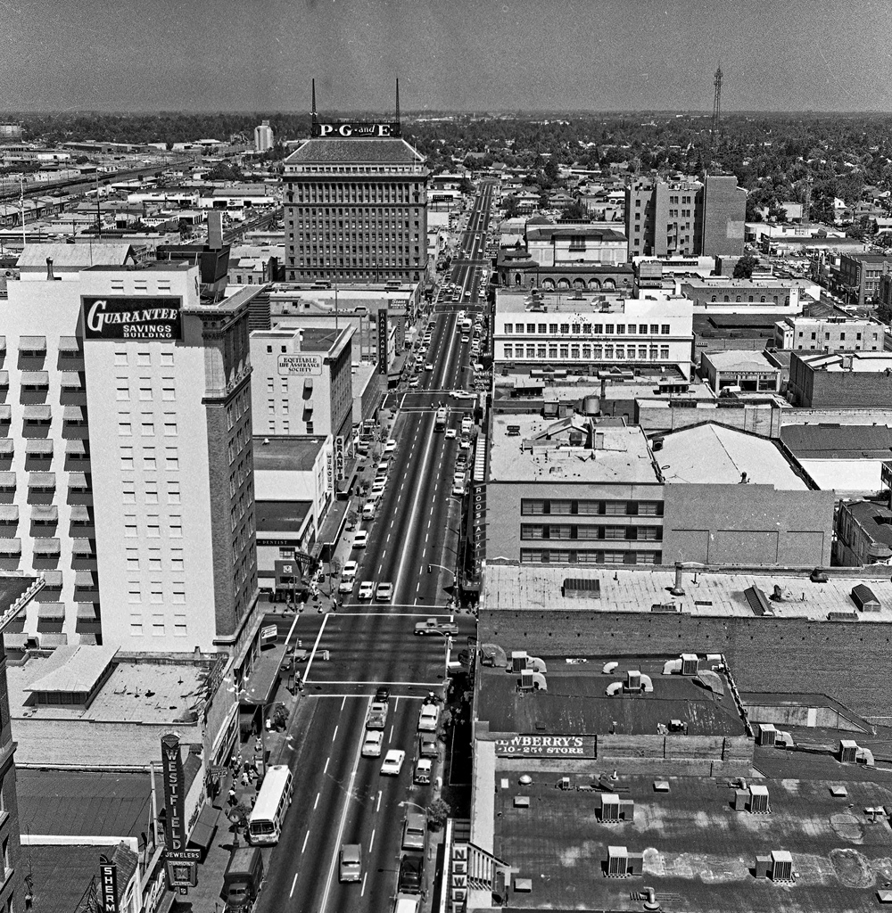 Everyone went downtown on Friday and Saturday nights to eat in the locally-owned restaurants and multiple retail shops, see a movie (or two) in one of the many theaters and often just window shop up and down each side of the 12 block long strip, where cool breezes were enjoyed on summer evenings. My dad founded a business downtown in 1953 and my younger brother and cousin used to run all over the downtown area with impunity enjoying the theaters and especially the old Fresno Malt Shop.