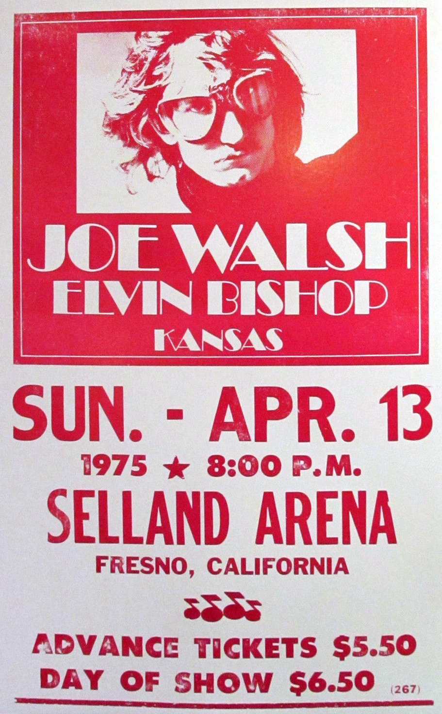 Joe Walsh headline plus the Elvin Bishop and Kansas in concert at Selland Arena. April 13, 1975