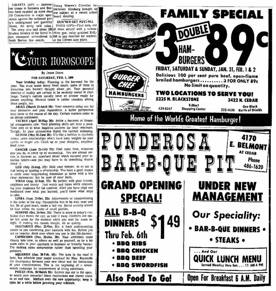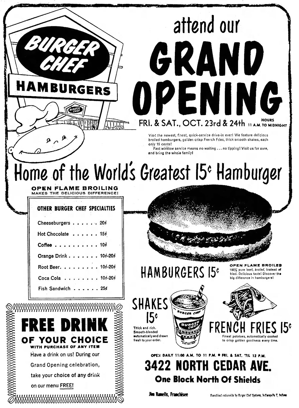 *Note from admin: Newspaper clipping added from 1968 showing Burger Chef ad.