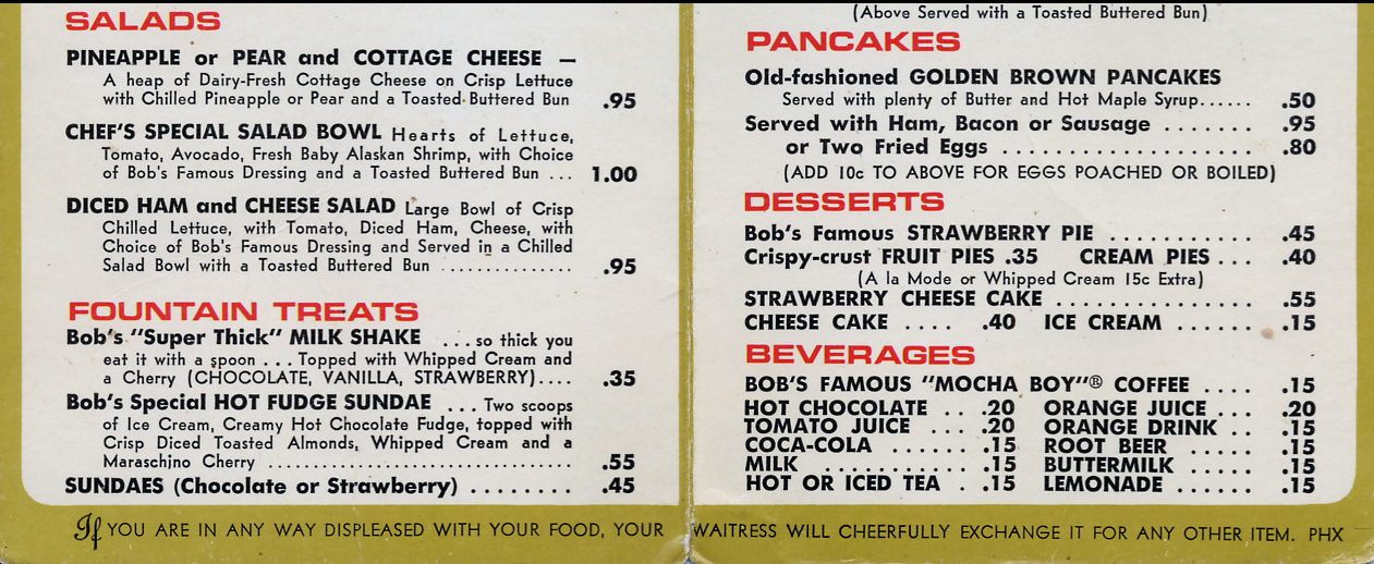 I remember how high the waitress's beehive hairdos were in the 60's. This was the Blackstone/Shaw location. My family liked Bob's-I remember the great hamburgers and the chili size (spaghetti with a meat patty and chili). Yum