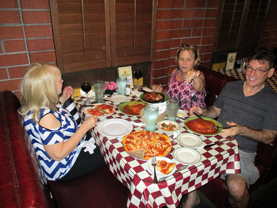Here are some shots of the miss-leading sign on the exterior and also the infamous street sign. The sign is most likely the very same one from the 50/60's era. Finally, a shot of some happy pizza eaters.