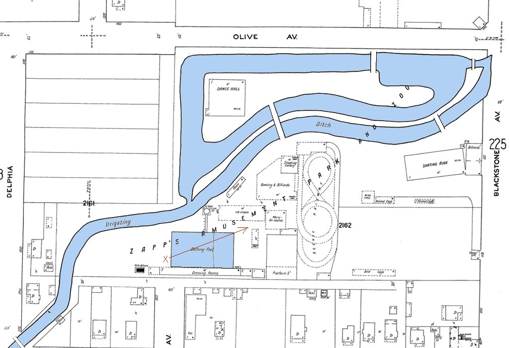 I've seen that picture as well but check out the map of Zapp's Park! The picture above was taken along side the swimming pool, not in the main part of the lagoon where the boats were rented. You can see the "Scenic Railway" in the background (and indicated on the map) so it is possible to identify the exact position of the shot. I put an "X" where the people were sitting and a arrow for the direction the shot was taken. Neat eh?