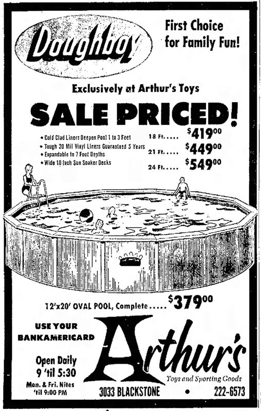 *Note from admin: Newspaper clipping added from 1969 showing Arthur's ad for a swimming pool.