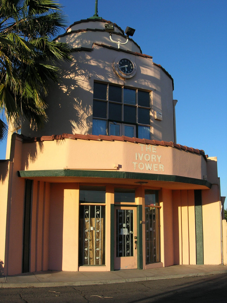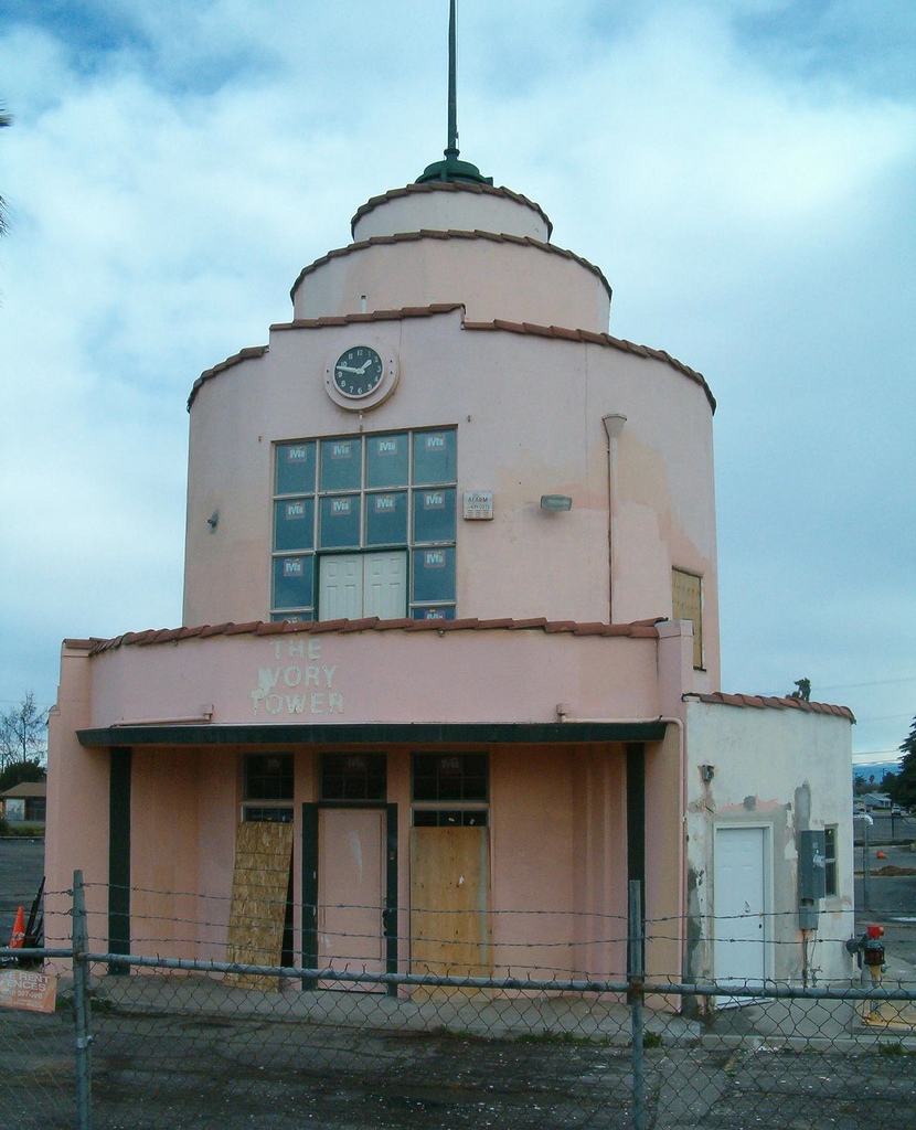 Billings and Fine built the Mayfair Shopping Center on the northeast corner of First and McKinley in 1951 as Fresno's first neighborhood shopping center. They built a two-story polygon-shaped building for their headquarters and watched the subdivision's progress from its twin balconies. In 1959, the building was moved to the middle of the shopping center, where it housed Norm's Drive-Inn and later the M-V Music store. But it's most commonly called the Ivory Tower, after a boutique that was there for many years.