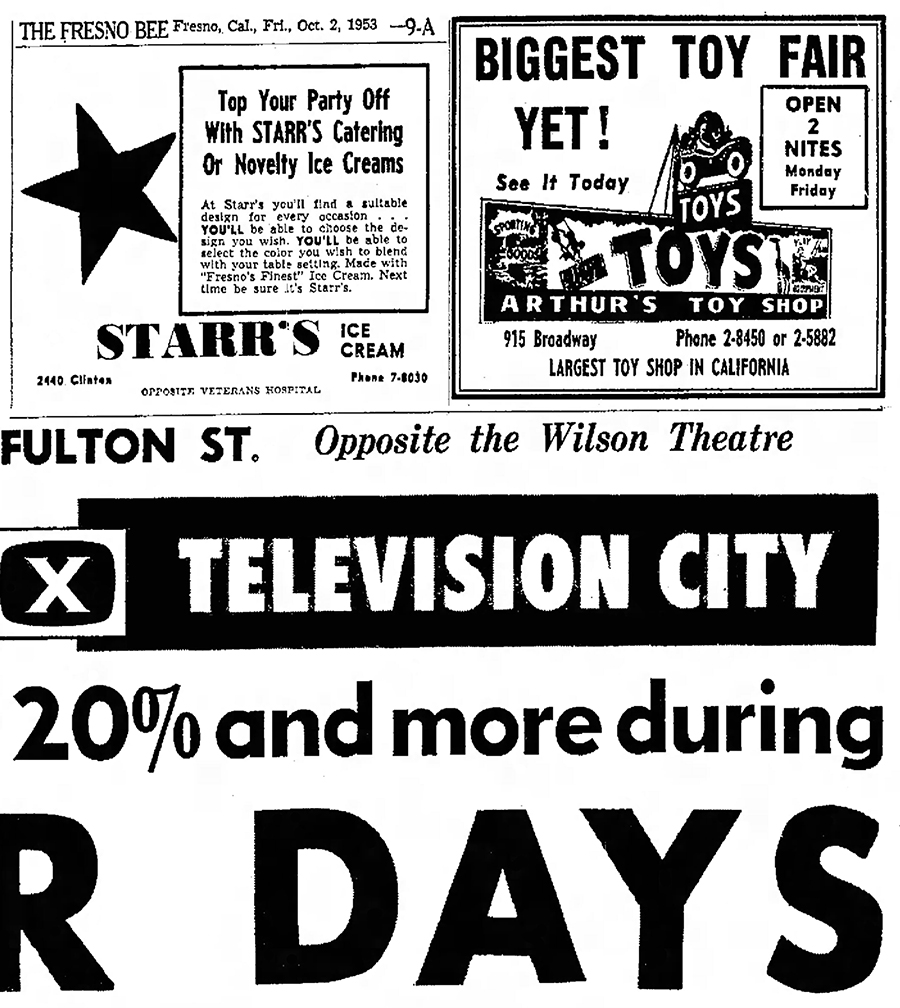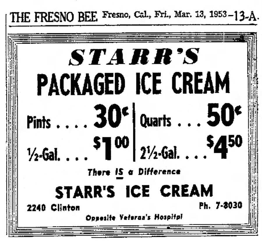 Star's Ice Cream was located just south of Fresno street on Clinton Avenue were a Gas station is today. We would swim all afternoon at Fresno High or at the old pool at Fresno City College. A cone for 10 cents after a long swim day on a hot summer day had no equal. Thanks Mom for your provision.