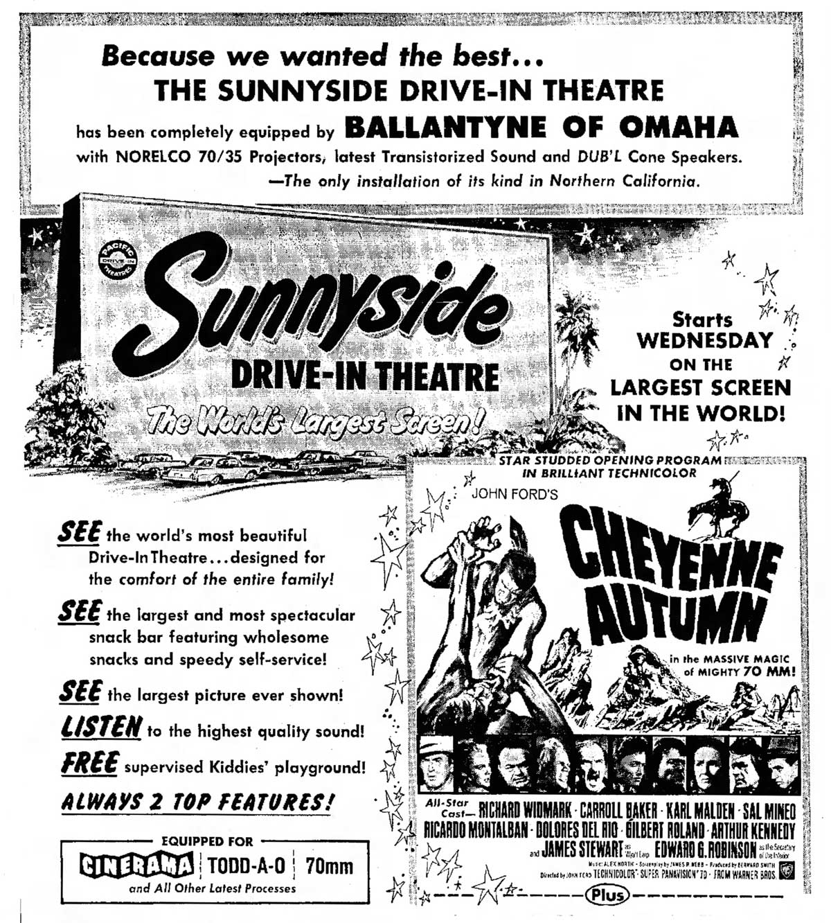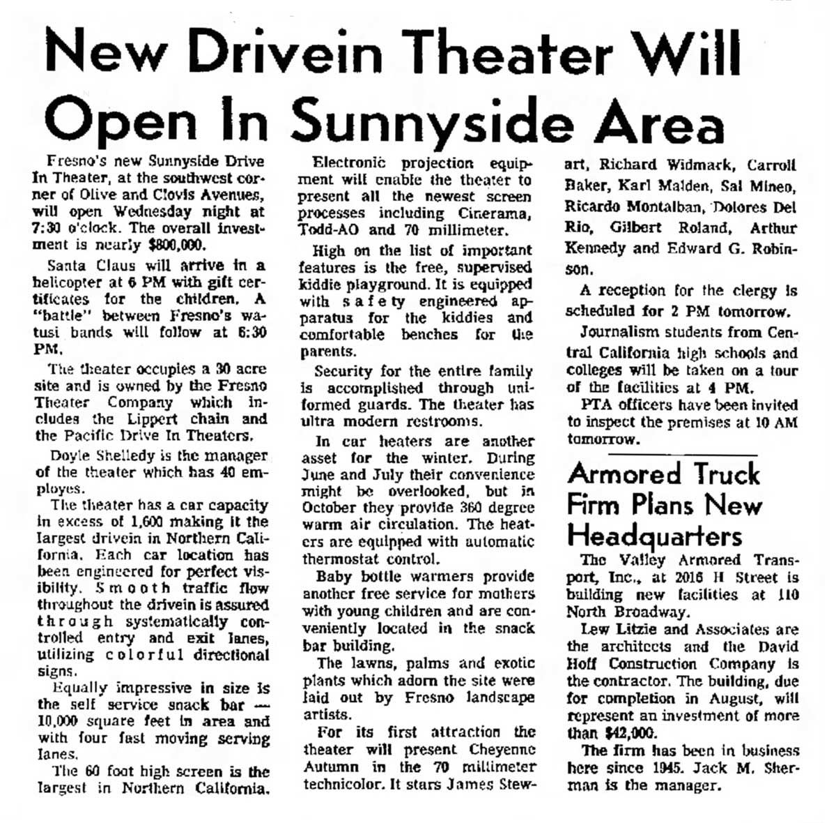 At one time, I believe Sunnyside Drive In had a third screen, to the west end. Wasn't there for very long. Attached is an article about the opening from the Fresno Bee on Sunday, May 23, 1965.