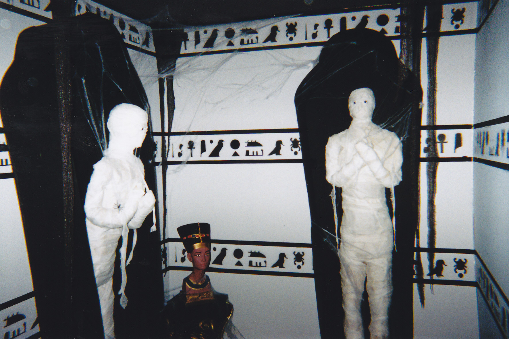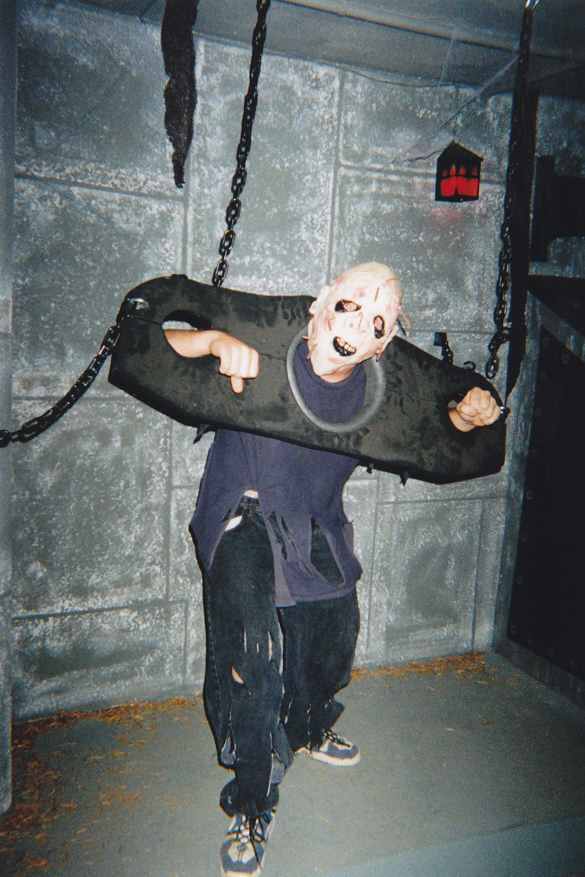 I floated between being the headless body in The Butcher's room and the decapitated head in the mad scientist's lab. And our nephew was the guy with the chainsaw in the graveyard.