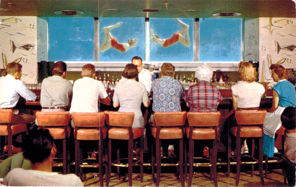 I remember the swimming mermaids in the late sixties, but between 1970-72 the pool swimmers were swimming topless. Pretty seedy and fewer customers at the bar.